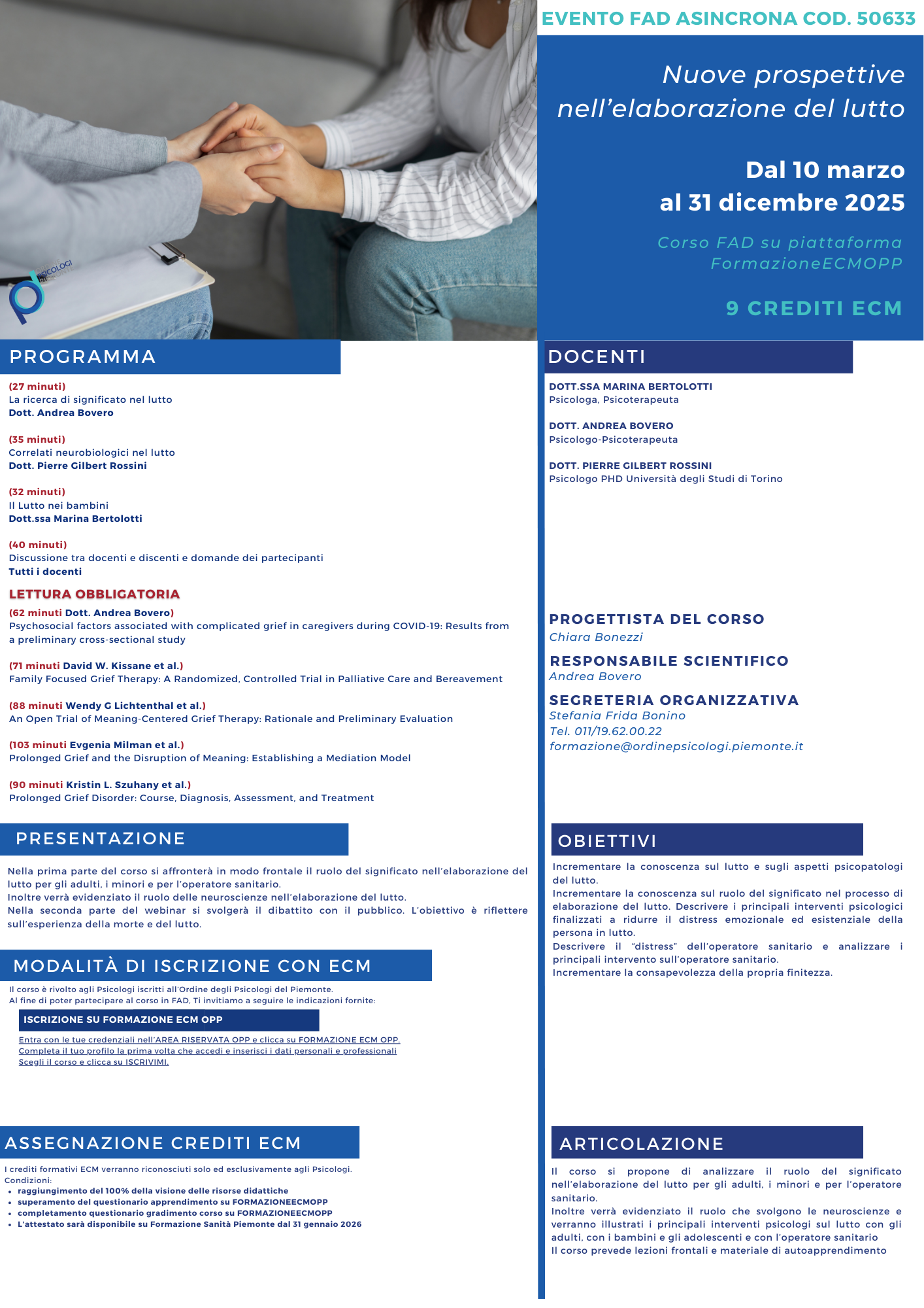nell’ambito dell’offerta formativa ECM in forma gratuita 2025 l’OPP propone l’evento dal titolo “Nuove prospettive nell’elaborazione del lutto”.