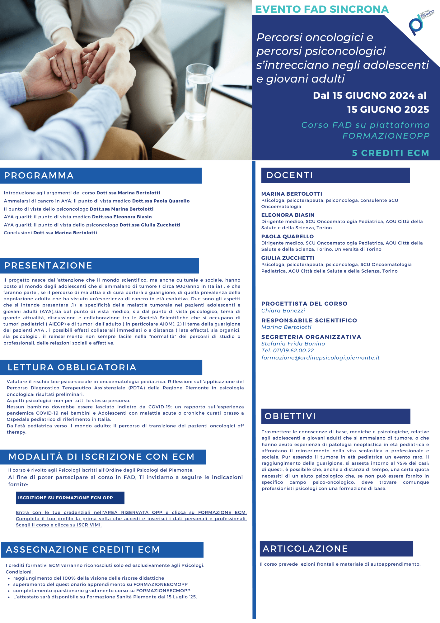 {FAD ASINCRONA} 5 CREDITI ECM – “Percorsi oncologici e percorsi psiconcologici s’intrecciano negli adolescenti e giovani adulti”