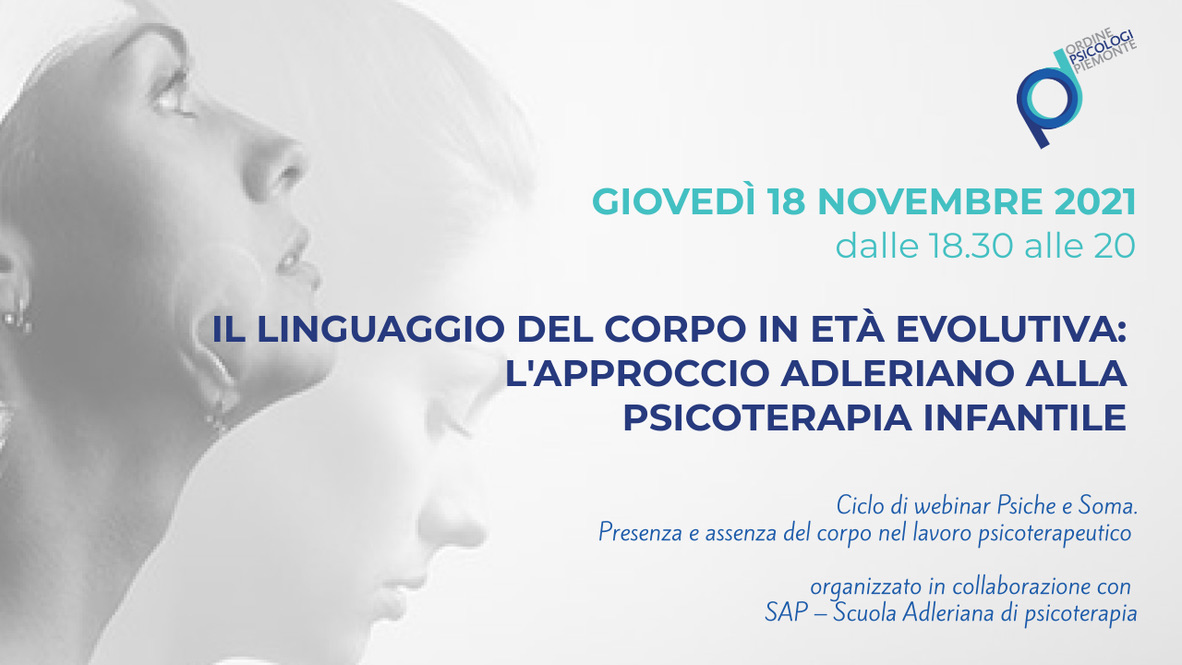 🎧 CICLO DI WEBINAR PSICHE E SOMA: 𝗜𝗹 𝗹𝗶𝗻𝗴𝘂𝗮𝗴𝗴𝗶𝗼 𝗱𝗲𝗹 𝗰𝗼𝗿𝗽𝗼 𝗶𝗻 𝗲𝘁𝗮’ 𝗲𝘃𝗼𝗹𝘂𝘁𝗶𝘃𝗮: 𝗹’𝗮𝗽𝗽𝗿𝗼𝗰𝗰𝗶𝗼 𝗔𝗱𝗹𝗲𝗿𝗶𝗮𝗻𝗼 𝗮𝗹𝗹𝗮 𝗽𝘀𝗶𝗰𝗼𝘁𝗲𝗿𝗮𝗽𝗶𝗮 𝗶𝗻𝗳𝗮𝗻𝘁𝗶𝗹𝗲 organizzato in collaborazione con SAP – SCUOLA ADLERIANA DI PSICOTERAPIA.