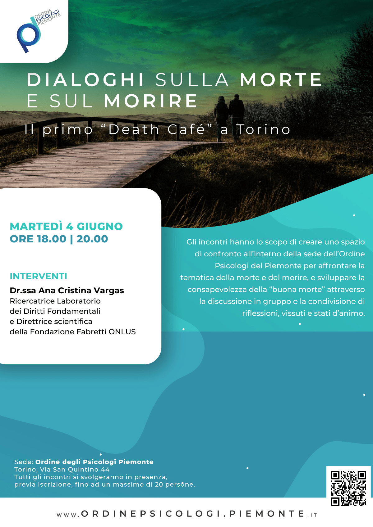 Ti informiamo che il secondo incontro del ciclo di appuntamenti di condivisone emotiva, intellettuale e filosofica, dedicato al tema della morte, si terrà martedì 4 giugno 2024, dalle ore 18.00 alle ore 20.00, presso la sede dell’Ordine, in via San Quintino 44 a Torino.